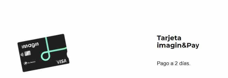 • Tarjeta Imagin&Pay: Esta tarjeta no tiene intereses. Con ella podrás pagar el crédito en plazos de liquidación más cortos. El plazo preestablecido es de 2 días, aunque puedes modificarlo.